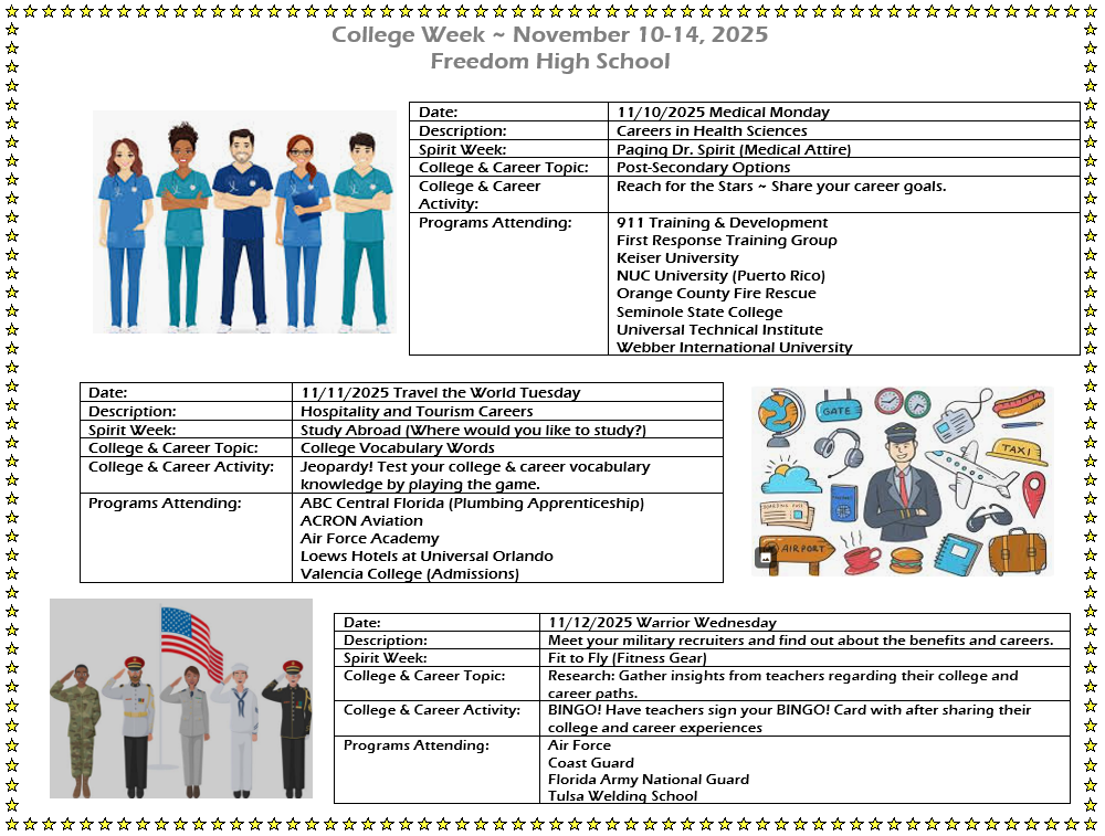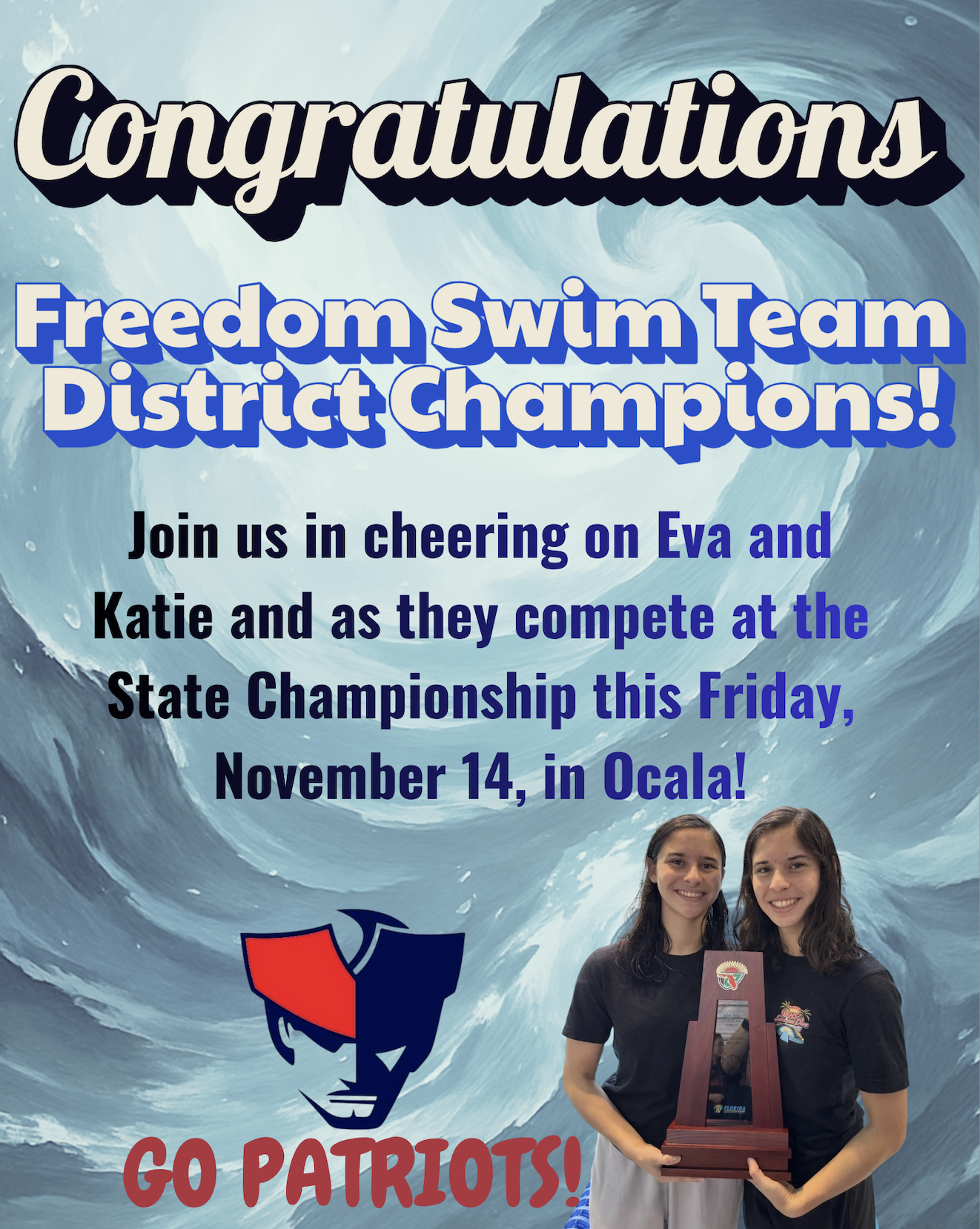 We are committed to ensure the Patriot community will support our students as they grow instructionally, emotionally and socially. We continue to offer a plethora of advanced placement coursework, industry certifications, and dual enrollment opportunities with Orange Technical College, Valencia College, University of Central Florida, and University of Florida. In addition, Freedom offers a variety of FHSAA sports, and opportunities to participate in our awardwinning performing arts programs and/or visual arts programs.